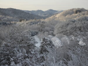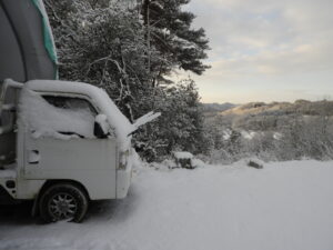 今朝の最低気温は-7℃で冷え込み厳しく、昨日夜から降った雪が朝には15cmほどの積雪となりました。