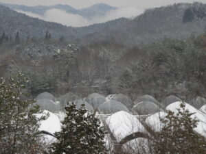 明けましておめでとうございます。新年も土屋農園ホームページをよろしくお願いします。年末から年始にかけて寒波がやってきて、元旦は雪はなかったのですが、夜から少しづつ降って、1/2の朝は5センチほどの積雪となりました。1/2の残った雪に翌日(1/3)はさらに積もって15センチほどの積雪となりました。
