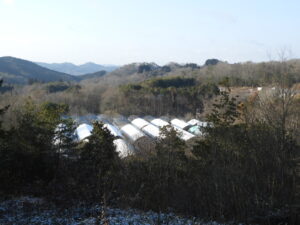 今朝(8:38)の土屋農園、朝一は少し雪がありその後は晴れてきました。1/29