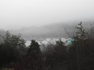 今朝()の土屋農園、朝は霜が降りて霧が出ています。1/19